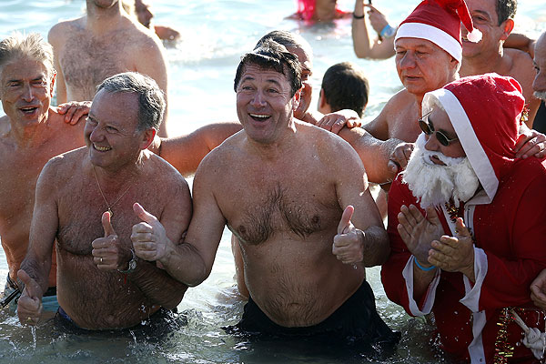 Мэр Ниццы Кристиан Эстрози принял участие в традиционном рождественском заплыве. Температура воды в этот день составила 16 градусов по Цельсию.