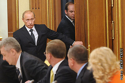 Премьер-министр РФ Владимир Путин перед началом заседания правительства РФ