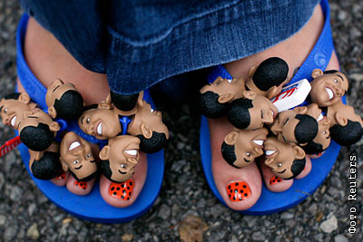 В США многие сторонники Барака Обамы обзавелись интересной обувью