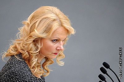Министр здравоохранения и социального развития РФ Татьяна Голикова на заседании Госдумы РФ