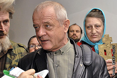 Бывший сотрудник Генштаба полковник Владимир Квачков, обвиняемый в покушении на главу РАО "ЕЭС России" А.Чубайса, перед началом заседания в Московском областном суде