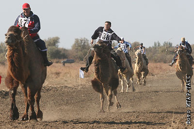 Во время скачек на верблюдах на ипподроме в селе Три Протока