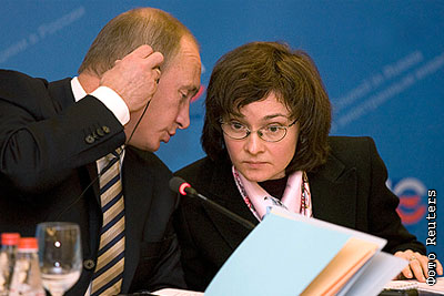 Владимир Путин и Эльвира Набиуллина на заседании консультативного совета по иностранным инвестициям при правительстве РФ