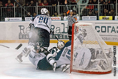На матче чемпионата КХЛ: "Авангард" (Омск) - "Динамо" (Москва) – 3:2