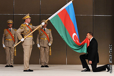 Президент Азербайджана Ильхам Алиев во время церемонии инаугурации во дворце Гейдара Алиева