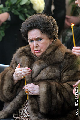 Вдова Мстислава Ростроповича Галина Вишневская на церемонии открытия памятника на кладбище Новодевичьего монастыря