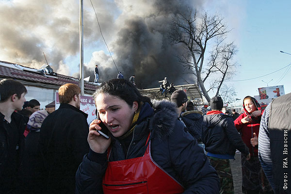 Пожар на рынке в Грозном