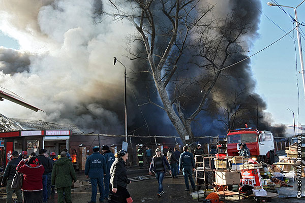 Пожар на рынке в Грозном