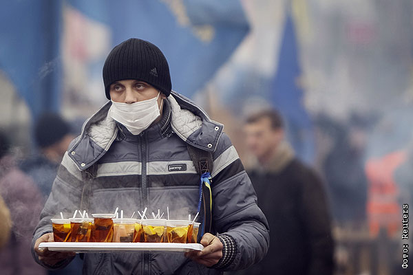 Чай для сторонников евроинтеграции Украины на баррикадах в центре Киева.