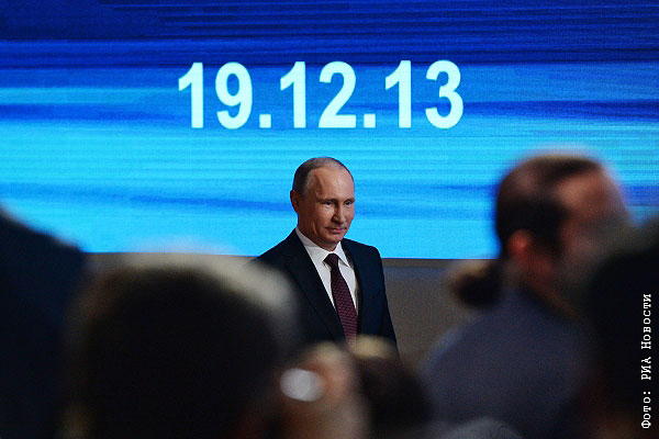 19 декабря 2013. Президент России Владимир Путин на большой ежегодной пресс-конференции в Центре международной торговли на Красной Пресне.
