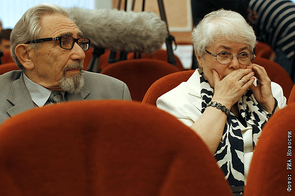 Родители Михаила Ходорковского Борис и Марина Ходорковские во время заседания Верховного суда РФ, где рассматривается надзорная жалоба на приговор экс-главе ЮКОСа Михаилу Ходорковскому и его бывшему партнеру Платону Лебедеву.