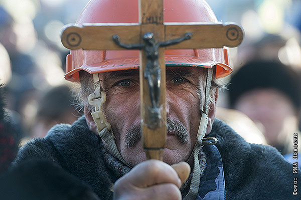 Участник акции сторонников евроинтеграции Украины "Народное вече" на площади Независимости в Киеве.
