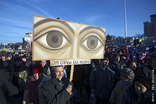 Участники акции сторонников евроинтеграции Украины "Народное вече" на площади Независимости в Киеве.