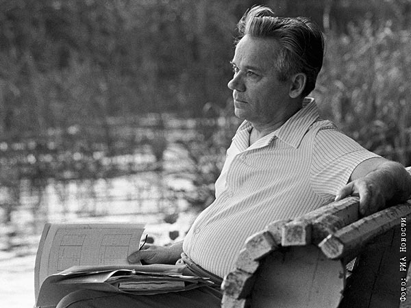 Лауреат Ленинской и Государственной премий, дважды Герой Социалистического Труда, конструктор стрелкового оружия Михаил Калашников отдыхает у пруда.