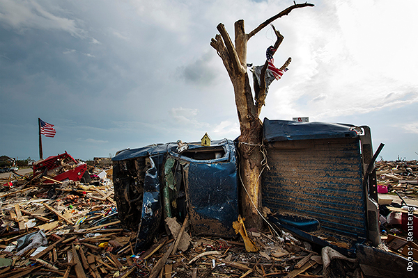 Мощный торнадо обрушился на город Мур в пригороде Оклахома-Сити (штат Оклахома) 20 мая. Смерчу была присвоена высшая категория опасности - EF-5. Скорость ветра в воронке составила около 322 км/ч, или 90 м/с. Торнадо повредил около 13 тыс. домов, в том числе две школы и больницу. В списке погибших 24 человека, пострадали более 200 жителей. Местные власти оценили ущерб в $2 млрд.