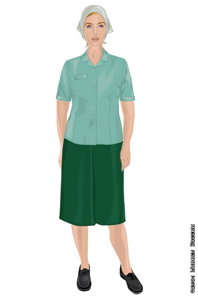 Согласно прилагаемым эскизам, женщины снабжаются приталенной блузкой с коротким рукавом, прямой юбкой, косынкой и полуботинками на низком каблуке. К этому костюму для прохладной погоды добавляется куртка с хлястиками по бокам на уровне талии, а для холодного сезона предусмотрено простроченное квадратами полупальто с воротником.