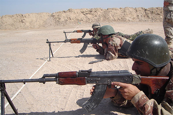 Ручной пулемет Калашникова - наиболее старый вариант пулемета на базе АК. Принят на вооружение советской армии в 1962 году. Производился по лицензии в нескольких государствах Восточного блока, используется армиями десятков стран. На этом фото - в руках иракских военнослужащих.