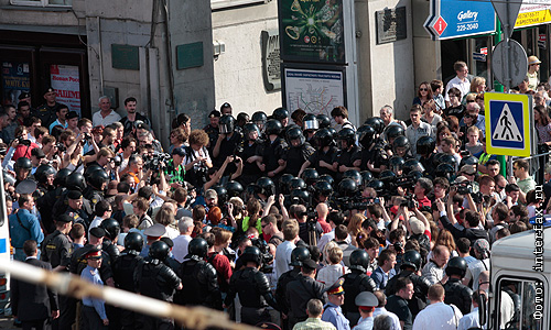 На Триумфальной площади полиция задержала оппозиционного политика и писателя Эдуарда Лимонова, который пришел на митинг в защиту свободы собраний. "Ничего не сказали, кинулись на меня", - рассказал Лимонов "Интерфаксу" по телефону из полицейского автобуса.