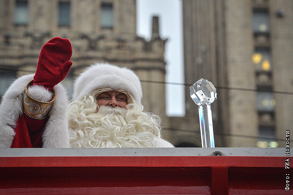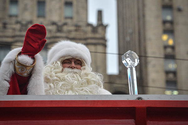 Дед Мороз совершает круг почета по Садовому кольцу.
