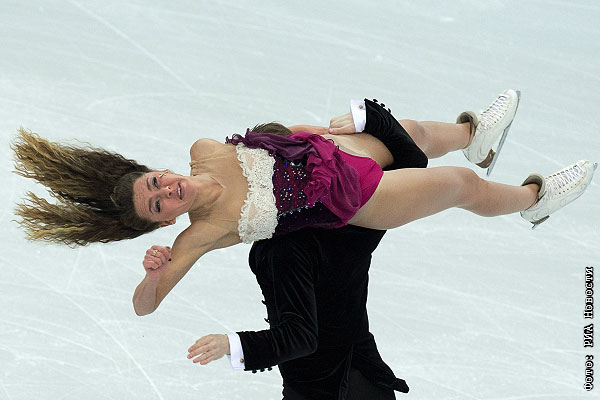 Екатерина Рязанова и Илья Ткаченко выступают в произвольной программе танцев на льду на чемпионате России по фигурному катанию в Сочи.