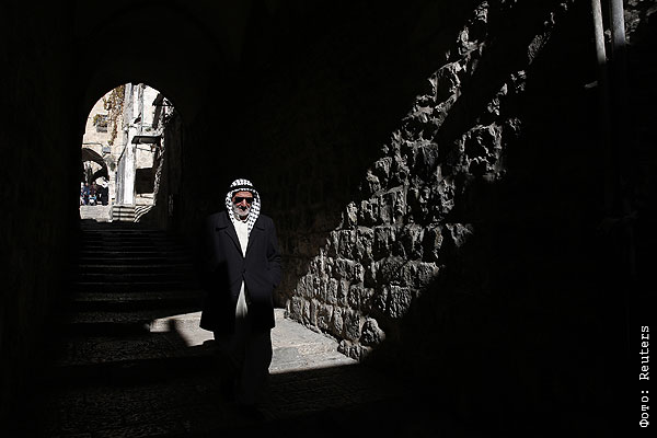 Палестинский мужчина прогуливается по улицам Старого Иерусалима.