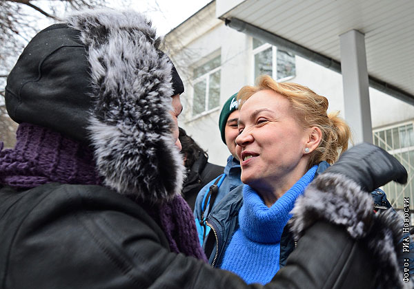 Бывший шеф-редактор информагентства Ура.ру Аксана Панова (справа), обвиняемая в вымогательстве, после оглашения приговора у Ленинского суда Екатеринбурга. А.Панова приговорена к 2 годам лишения свободы условно с запретом заниматься журналистикой.