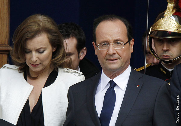 Франции Франсуа Олланд вместе с Валери Триервейлер во время церемонии инаугурации.