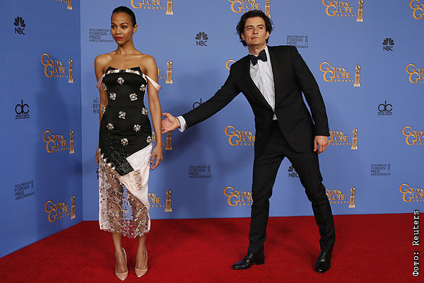 Зои Салдана и Орландо Блум перед началом церемонии застыли в странных позах.