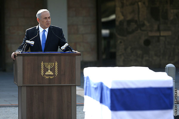 Премьер-министр Израиля Беньямин Нетаньяху на церемонии прощания с Ариэлем Шароном.