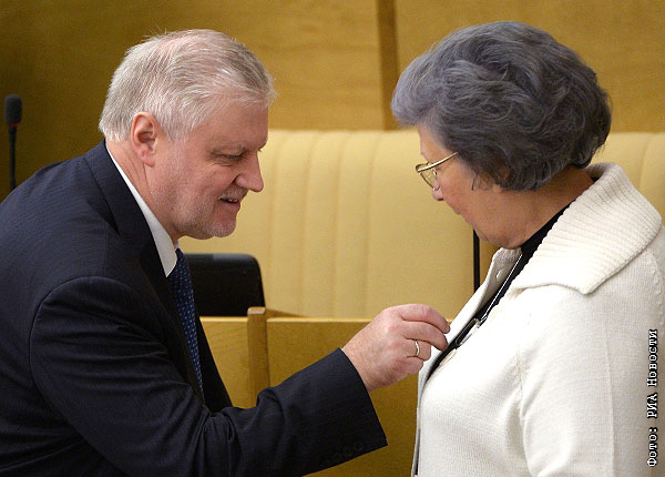 Член комитета Государственной Думы по жилищной политике и жилищно-коммунальному хозяйству Сергей Миронов и заместитель председателя комитета Государственной Думы по регламенту и организации работы ГД Светлана Горячева во время первого пленарного заседания весенней сессии Государственной Думы Российской Федерации.
