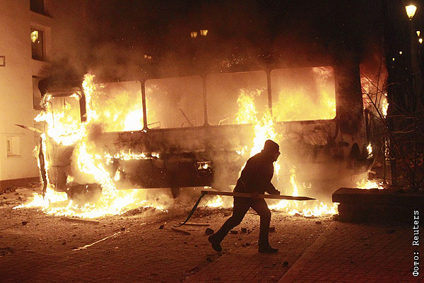 В ходе столкновений в центре Киева сгорела милицейская спецтехника.
