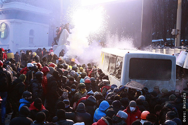 Беспорядки в Киеве начались после митинга на майдане Незалежности, посвященного принятым на минувшей неделе законам, ограничивающим гражданские свободы в стране.
