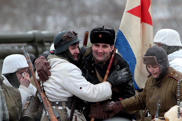 Участники военно-исторической реконструкции "В полосе прорыва", посвященной освобождению Ленинграда от фашистской блокады, в Ломоносовском районе Ленинградской области.