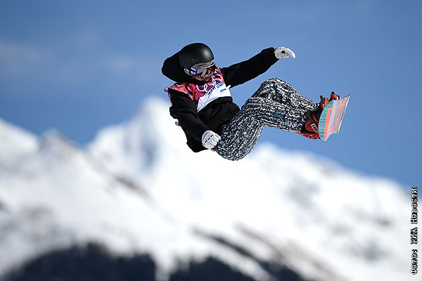 Роопе Тонтери (Финляндия) в финале слоупстайла на соревнованиях по сноуборду среди мужчин на XXII зимних Олимпийских играх в Сочи.