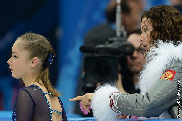 Юлия Липницкая (Россия) перед выступлением в короткой программе женского одиночного катания командных соревнований по фигурному катанию н