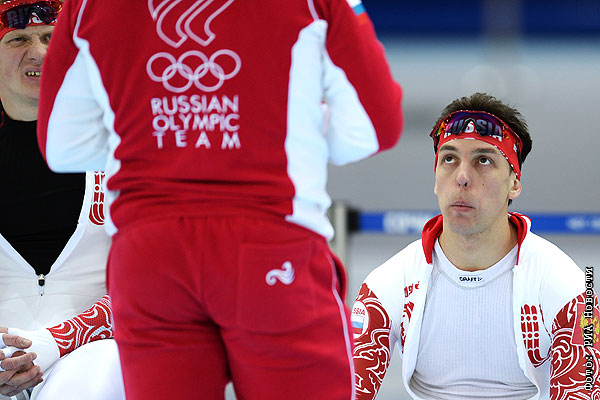 Артем Кузнецов (слева) и Дмитрий Лобков (Россия) на тренировке перед началом XXII зимних Олимпийских игр в Сочи.