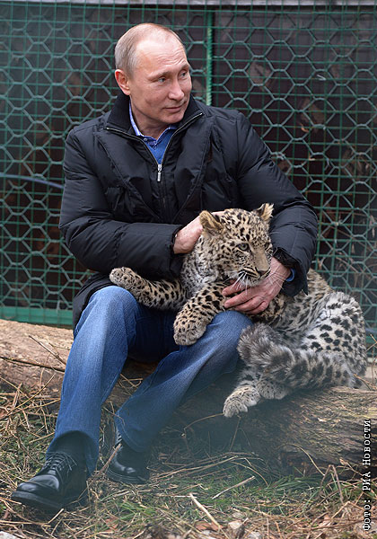Владимир Путин, который находится с рабочей поездкой в Сочи, во вторник приехал в Центр разведения и реабилитации переднеазиатского леопарда, расположенный в Сочинском национальном парке. Там президент в компании зарубежных гостей и вице-премьера Дмитрия Козака зашел в один из вольеров с котенком леопарда. В какой-то момент, устав от щелчков затворов фотокамер, маленький хищник бросился на журналистов, поцарапав руку одному из них, а другому - вцепившись зубами в колено. После этого гости предпочли покинуть вольер. Путин же еще какое-то время провел в компании леопарда, гладя его и пытаясь успокоить. "Я люблю животных, видимо, чувствую их. Мы друг другу приглянулись", - объяснил президент позднее журналистам.