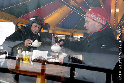 После катания президент и премьер зашли в одно из горнолыжных кафе "Красной поляны"