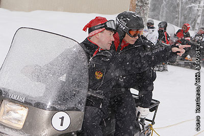Президент РФ Дмитрий Медведев и председатель правительства Владимир Путин провели воскресный день 3 января на горнолыжном курорте "Красная Поляна"