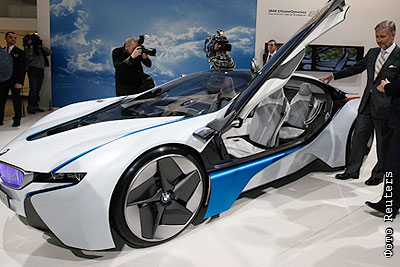 Принц Бельгии Филипп у стенда с автомобилем BMW