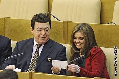 Депутат Госдумы РФ, певец Иосиф Кобзон и депутат Госдумы РФ Алина Кабаева на пленарном заседании Государственной думы РФ