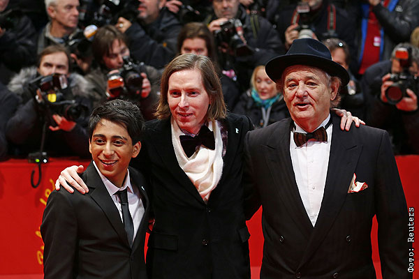 Тони Револори, Билл Мюррей, между ними режиссер фильма "Отель "Гранд Будапешт" Уэс Андерсон.