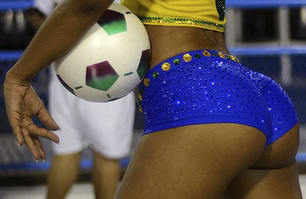 Рио-де-Жанейро готовится к карнавалу. Ученица школы самбы Uniao da Ilha на самбодроме во время репетиции.