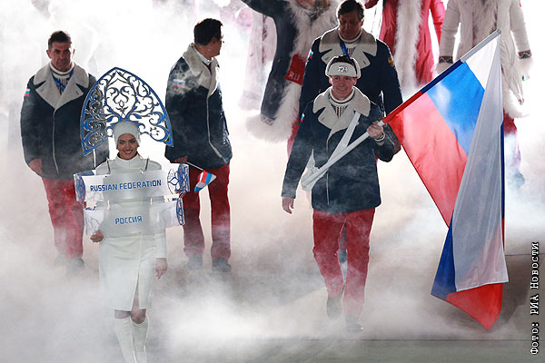 Знаменосец сборной России Александр Зубков во время парада атлетов и членов национальных делегаций на церемонии открытия XXII зимних Олимпийских игр в Сочи.