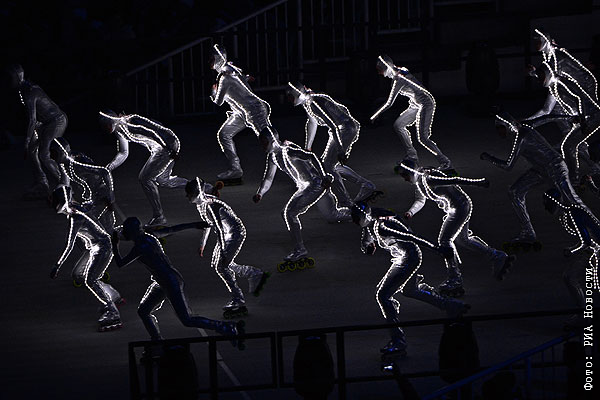 Артисты во время театрализованного представления на церемонии открытия XXII зимних Олимпийских игр в Сочи.