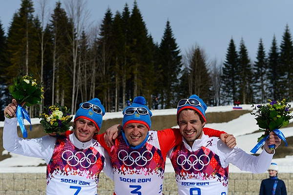 <b>Награда в Сочи: </b> золото (Легков), серебро (Вылегжанин) и бронза (Черноусов) в лыжной гонке на 50 км.