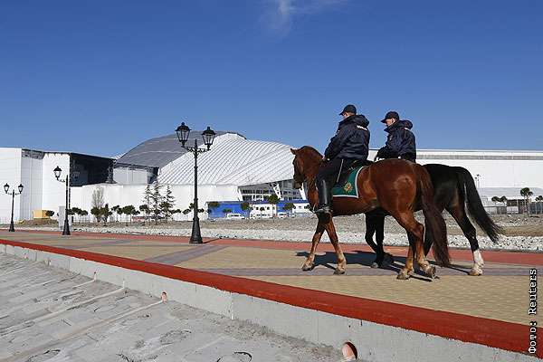 Конный патруль на набережной в Сочи.