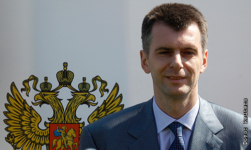 Президент группы ОНЭКСИМ Михаил Прохоров на церемонии закладки первого камня строительства заводов ООО "Ё-Авто" и ЗАО "Автомобильный завод "Яровит моторс" в индустриальном парке "Марьино".
