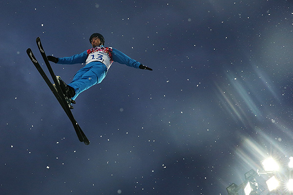 Дмитрий Дащинский (Белоруссия) в квалификации соревнований по лыжной акробатике на XXII Зимних Олимпийских играх в Сочи.
