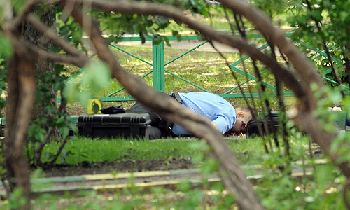 Саперы осмотрели тело застреленного в центре Москвы бывшего полковника Юрия Буданова, после чего к работе приступили криминалисты.